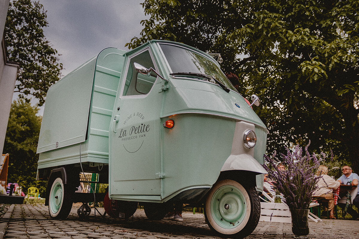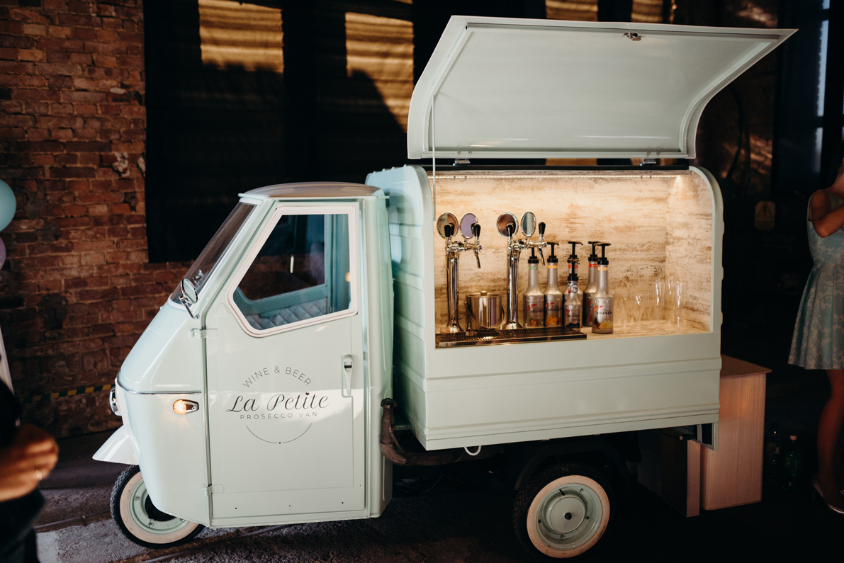 Prosecco Van to oryginalny trójkołowiec Piaggio Ape z 1996 roku, który przez lata służył na toskańskich winnicach. Dziś w nowym wydaniu serwuje wyśmienite alkohole prosto z kija – wino, prosecco i piwo lane z beczki.